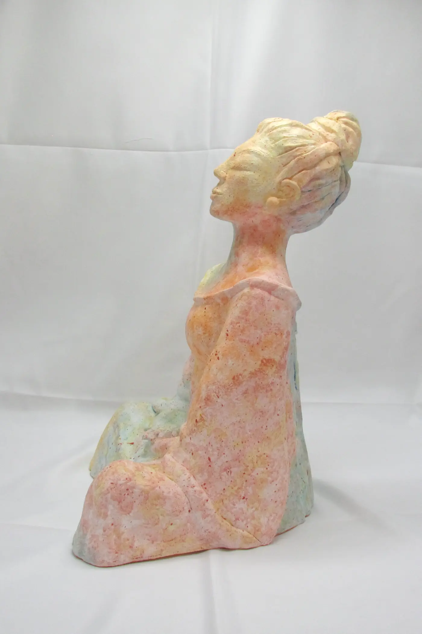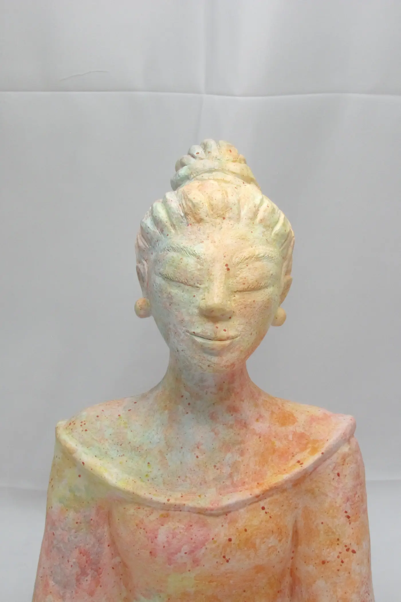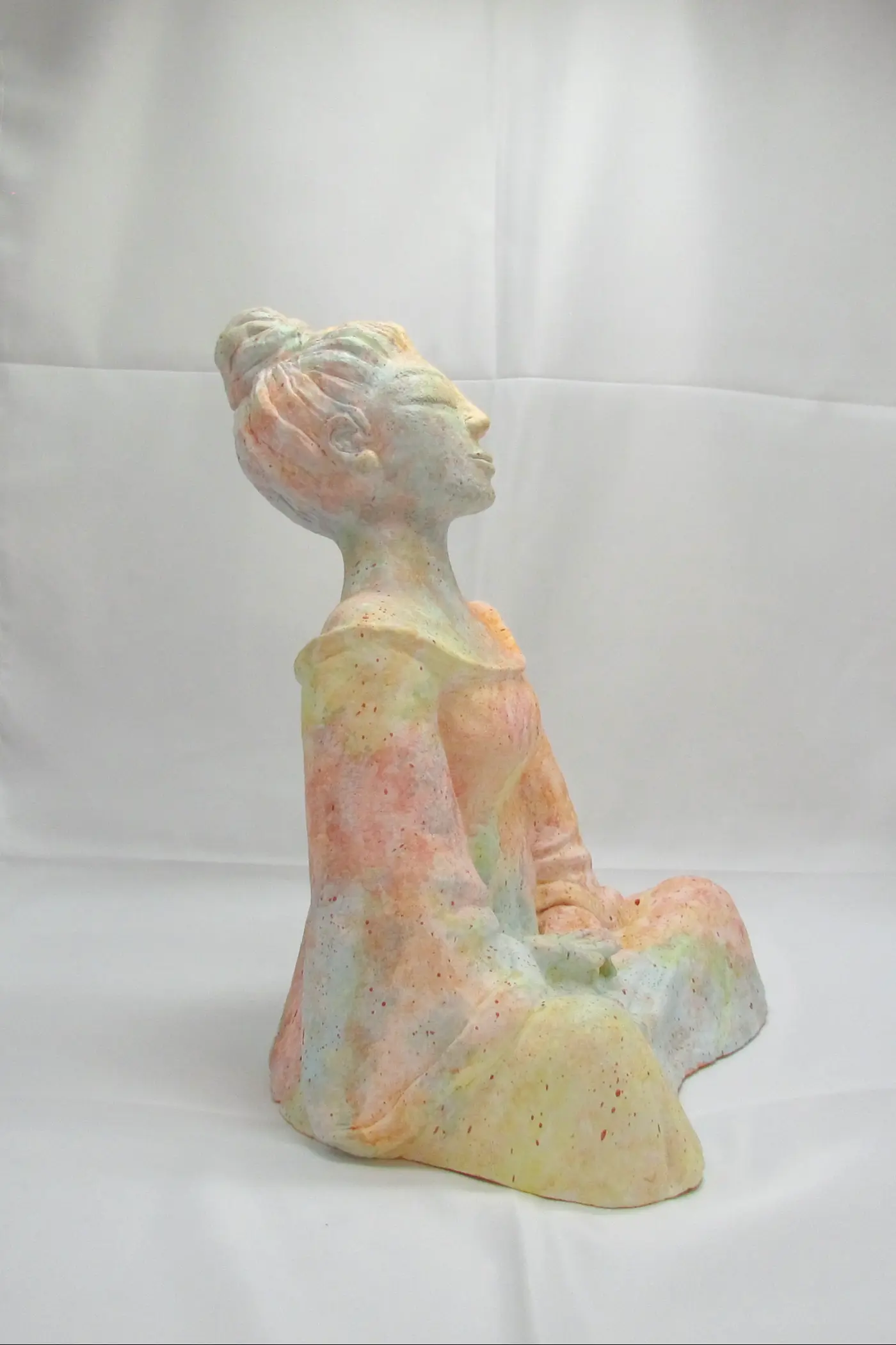Dans sa posture de méditation, Hina invite à la contemplation et à la reconnexion à soi. Cette version chromatique ajoute une dimension vibratoire particulière : les couleurs douces et harmonieuses créent une présence apaisante, une énergie de douceur et de force tranquille. Une sculpture qui transforme votre intérieur en espace sacré, un rappel quotidien de votre propre lumière intérieure.
