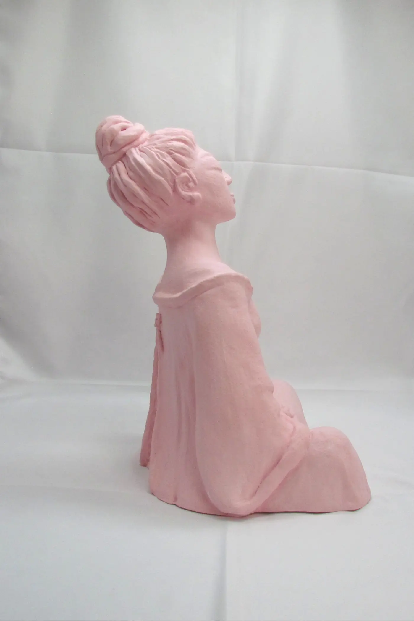 Issue d’un moulage de la sculpture originale en argile, chaque pièce de cette série limitée à 24 exemplaires est réalisée en plâtre-résine. Ce rose délicat naît de la superposition patiente de multiples couches de pigments 100% naturels appliqués à la main, créant une teinte homogène et vaporeuse qui capte la lumière avec une douceur particulière.
