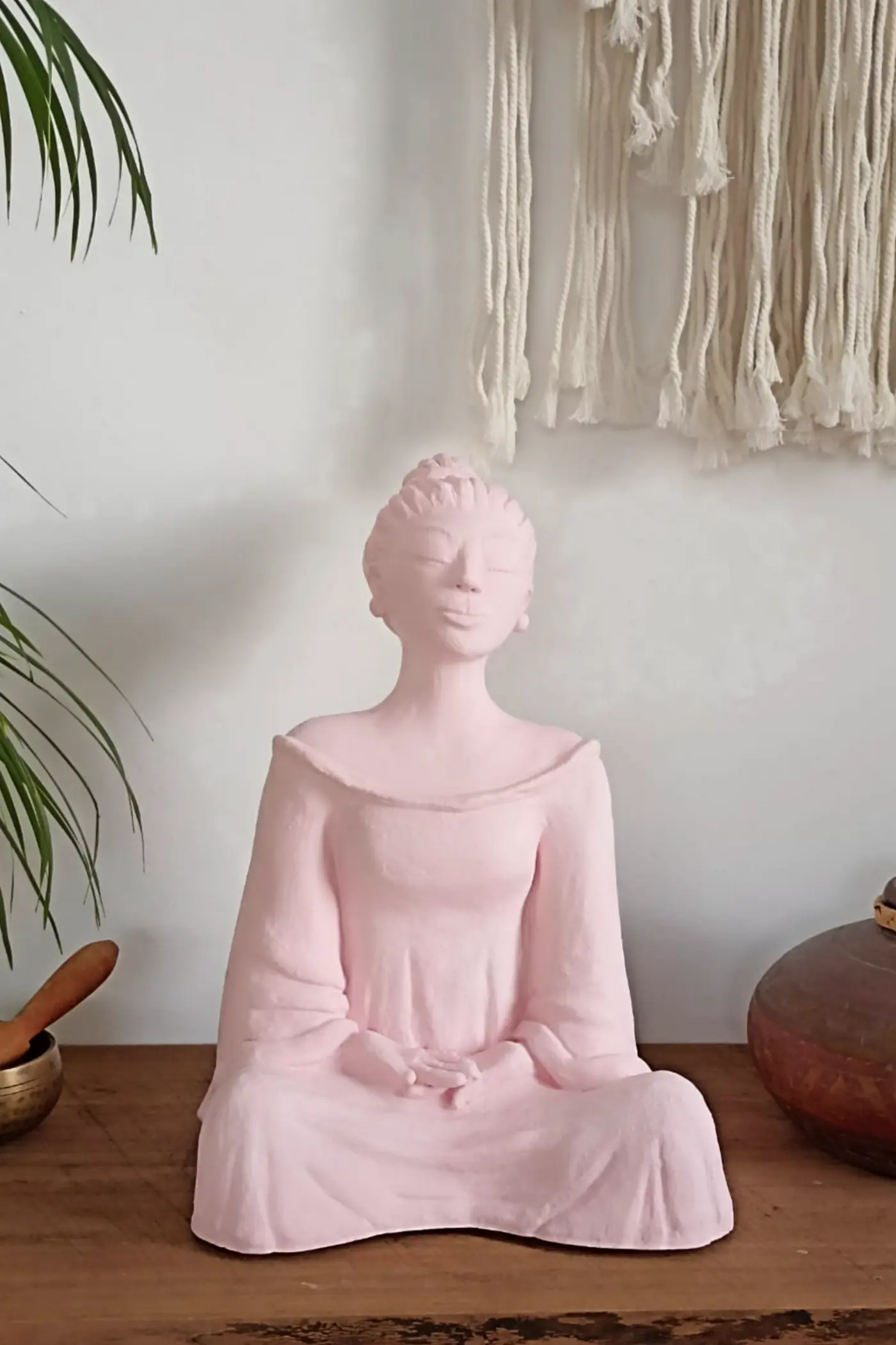 Comme un nuage qui flotte dans le ciel du matin, cette Hina incarne la légèreté, la douceur et la sérénité. Sa teinte rose poudré enveloppe votre intérieur d’une énergie maternelle et bienveillante, créant un cocon de tendresse et de paix. Dans sa posture méditative, elle vous invite à vous poser, à respirer, à vous laisser porter.